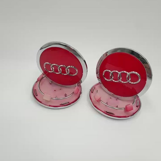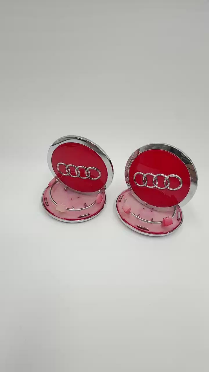 4pcs Audi Wheel Center Caps 69mm / 2.72" – Red with Chrome Rings