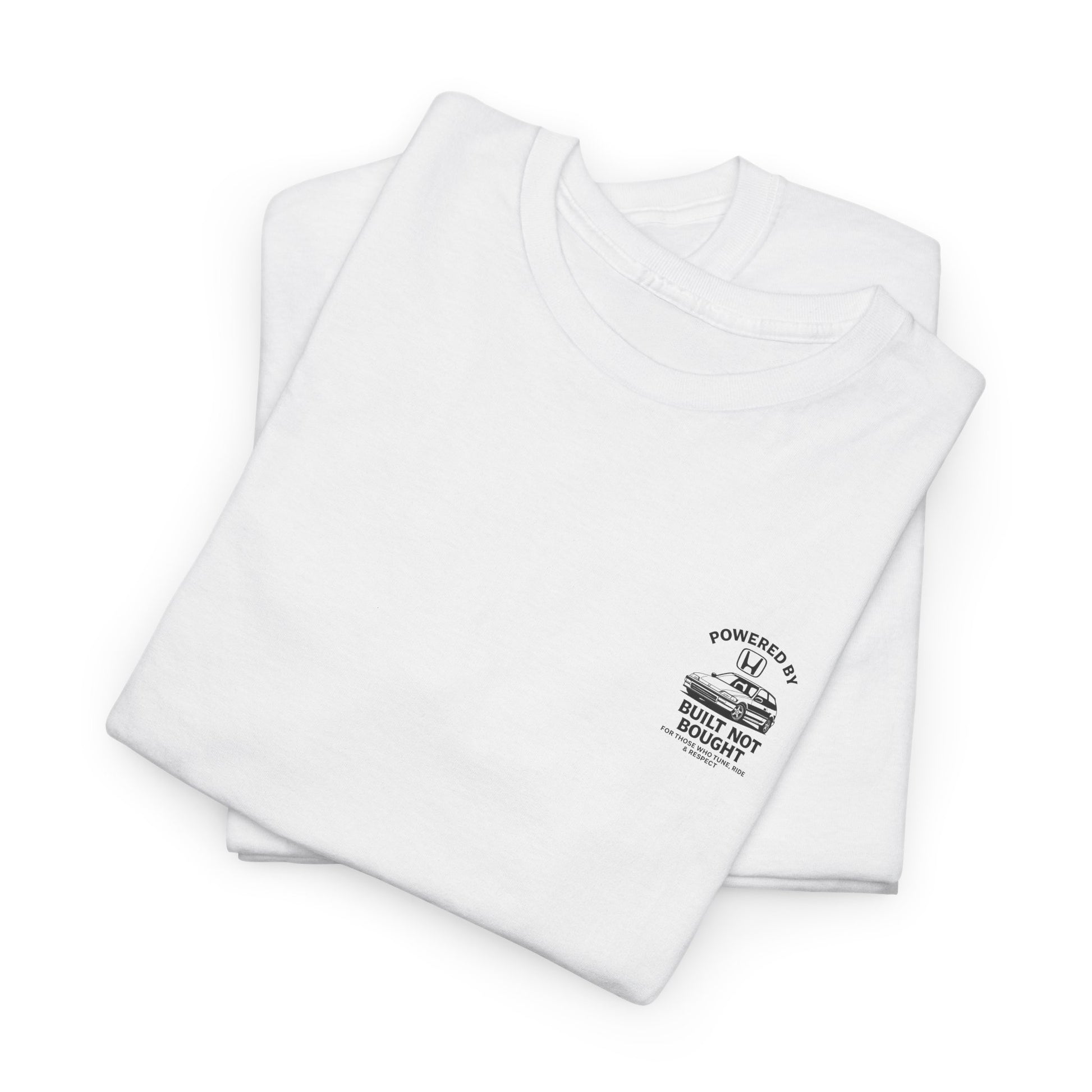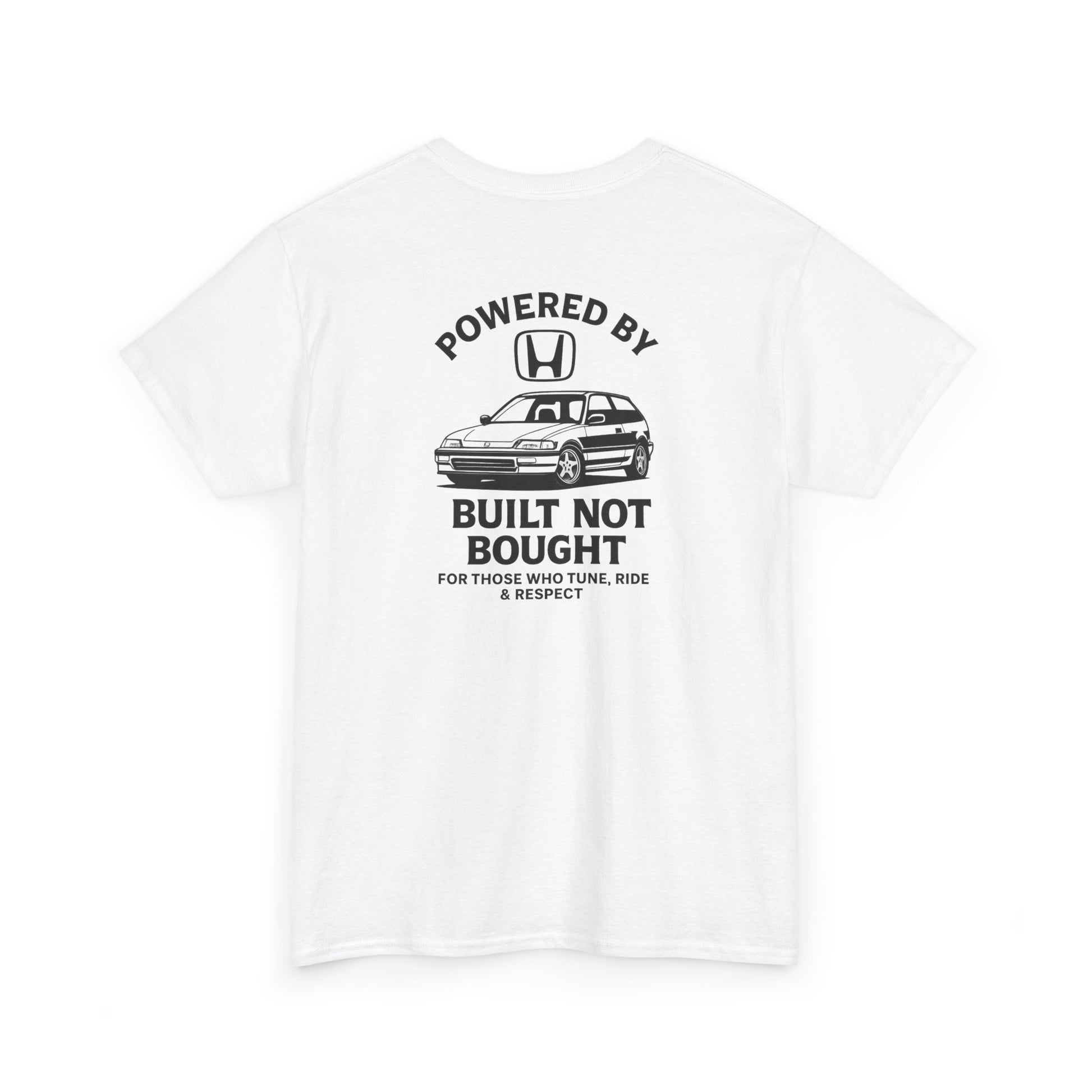 This shirt is made for true enthusiasts — the builders, tuners, and drivers who live and breathe DIY car culture. Featuring a bold graphic of a classic Civic with the iconic “Built Not Bought” slogan, it’s perfect for car meets, track days, or garage sessions.