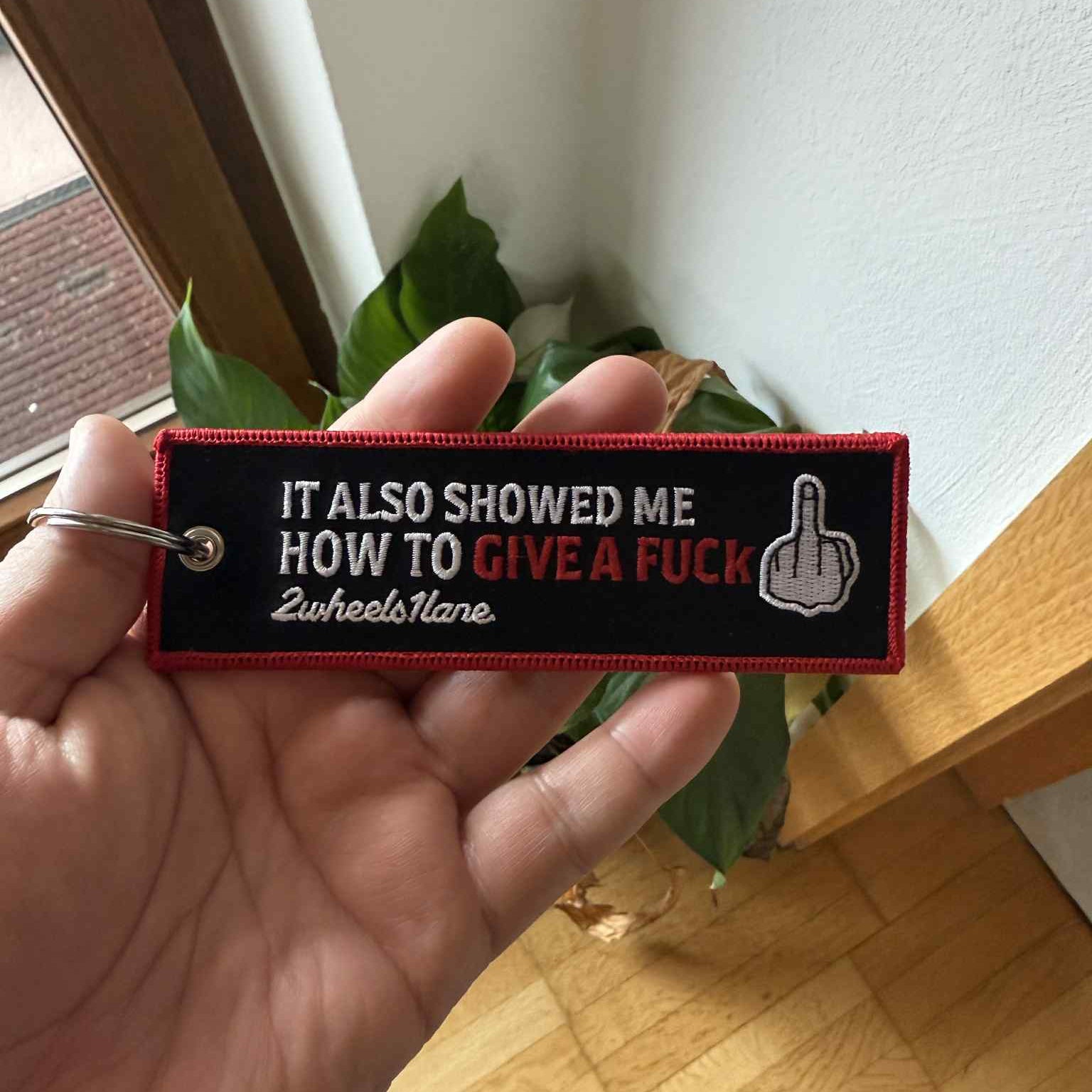 This motorcycle key tag (13cm x 4cm) is perfect for bikers. Strong fabric, easy to spot, and won’t scratch your bike.